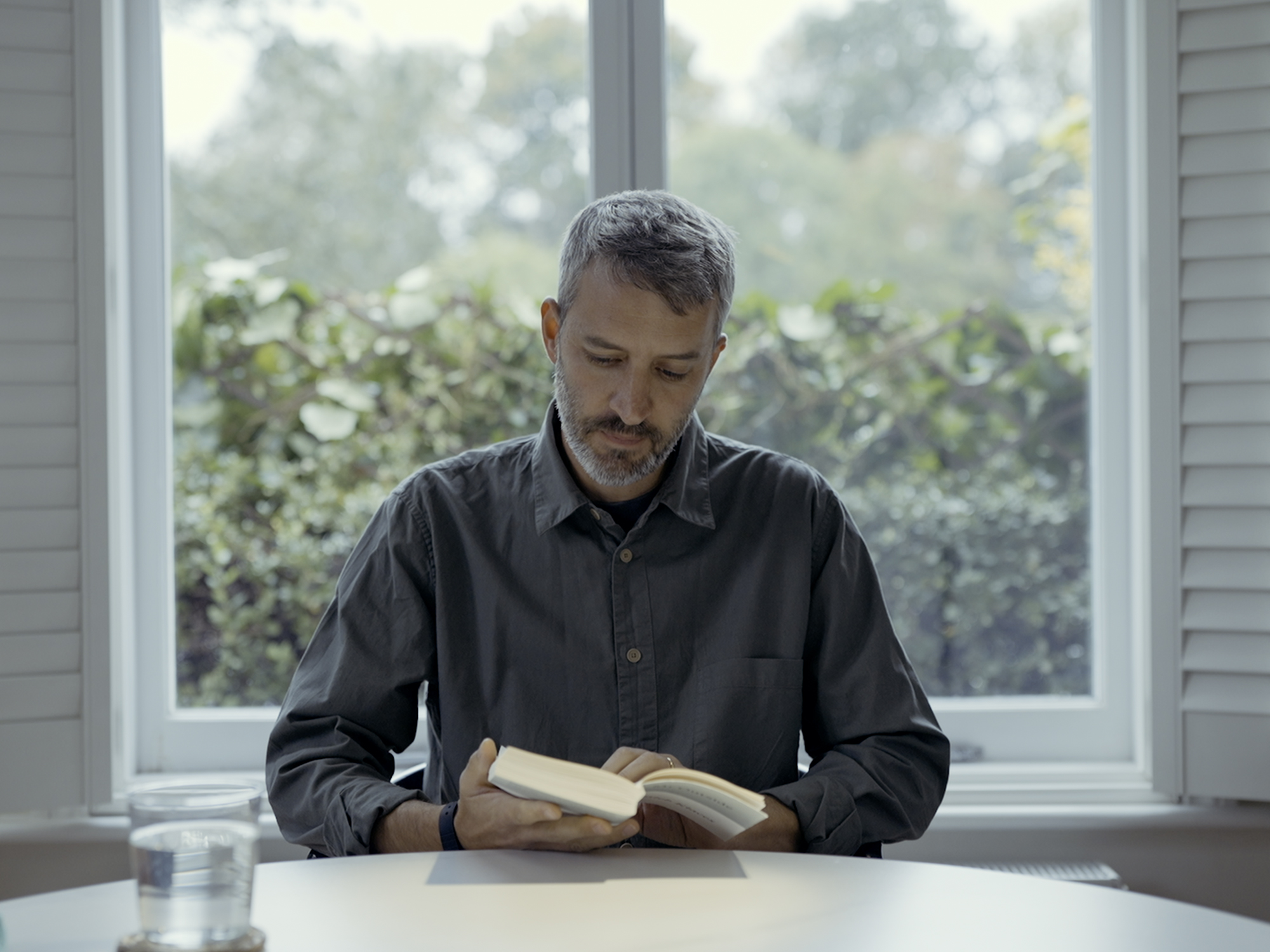 “On the evening of the autumn equinox over sunset, at the precise moment that summer becomes autumn, filmmaker Alyona Larionova filmed Caleb Klaces reading his novel Mr Outside in full. The film is 5 hours 12 mins long, and it’s exceptionally moving and beautiful experience to watch it, either with your full attention or in the background. The below film stills show the changing light as the novel/film progresses”.